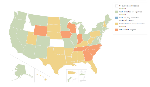 [iii] For a comprehensive and updated list of state cannabis regulations, see Marijuana Legality by State.” DISA Global Solutions, www.disa.com/marijuana-legality-by-state/; see also State Cannabis Legislation Database.” National Conference of State Legislatures, www.ncsl.org/health/state-cannabis-legislation-database.